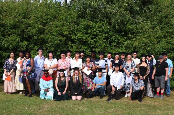 “De cursisten hebben bergen werk verzet”, vertelt directeur Nele Deboosere. “Soms ging het met veel goesting, soms met wat tegenzin, maar altijd met doorzettingsvermogen. Iedereen heeft zijn eigen weg afgelegd, met hier en daar een bocht of hobbel, maar gelukkig ook met een heleboel supporters langs de kant: vrienden, familie, en natuurlijk ons team op school. Ik hoop dat dit moment van viering niet alleen het einde is van een hoofdstuk, maar ook het begin is van nieuwe kansen, dromen en uitdagingen.” Op de foto zien we een deel van de afgestudeerden. (EG)