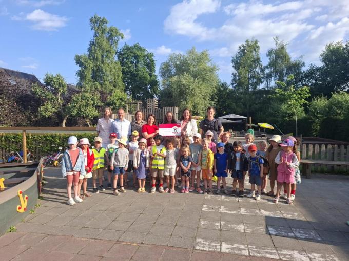 De oudergroep organiseerde onder andere een zomerbar, een verkoopactie, een quiz en een halloweenwandeling. Dankzij de medewerking en de steun van ouders en sympathisanten werd heel wat geld opgehaald. Om de vele investeringen van de school te financieren, overhandigde Veerle Van Vynckt, voorzitter van de ouderraad, een cheque van 4.250 euro aan directeur Ann Maertens. De voorzitter was duidelijk opgetogen dat de oudergroep iets kan betekenen voor de school en de kinderen, want een ouderraad is zoveel meer dan vergaderen. Het is organiseren, ondersteunen, nieuwe mensen leren kennen en veel plezier maken. Voor voorzitter Veerle Van Vynckt was het ook een afscheidsmoment, want volgend schooljaar geeft ze het voorzittersstokje door aan Tom Van Ooteghem. (foto PDC)