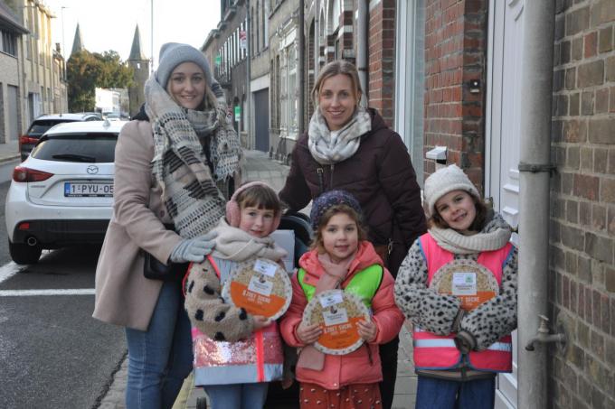 De oudervereniging van Lo heeft maar liefst 360 kilogram pannenkoeken verkocht ten voordele van VBS Oogappel. Op de wekelijkse donderdagmarkt baatte ze vorige week daarvoor een standje uit en zaterdag trokken leden van de oudervereniging samen met de kinderen van deur tot deur. De opbrengst gaat integraal naar de school en zal onder meer gebruikt worden voor de financiering van een buitenklas. Op de foto staan Lien Vandergucht en Sanne Bamelis met de kinderen Niene Torreele, Camille Ryckeboer en Nine Decorte. (KVCL)