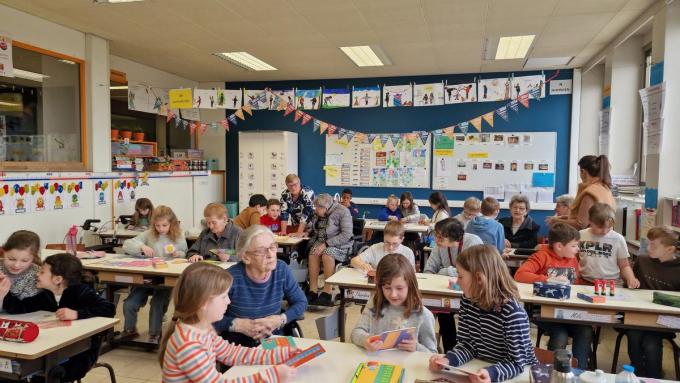 Op dinsdagnamiddag 5 maart namen tien bewoners uit het woonzorghuis Ter Meersch plaats op de schoolbanken van basisschool De Toekomst in Avelgem onder begeleiding van ergotherapeut Leen Vandenborre. “Deze initiatieven kaderen in de nauwe wisselwerking tussen de woonzorgcentra en de school”, zegt directeur Steven Verplancke. “#durfhetverschilmaken behoort immers tot het DNA van de school.” Op donderdagnamiddag 7 maart is het dan de beurt aan de bewoners van woonzorgcentrum Sint-Vincentius.