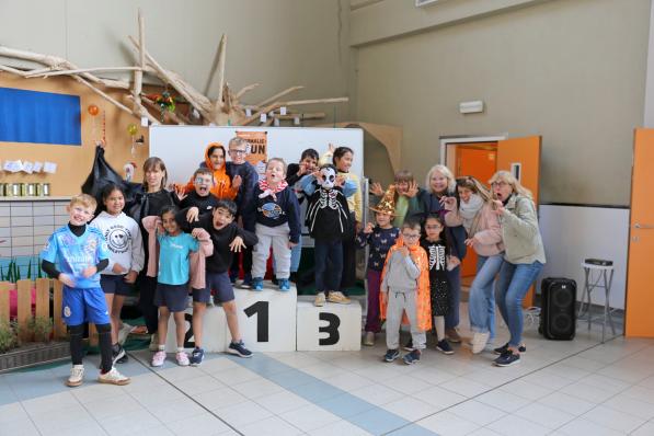 Zandvoorde / Schoolactiviteiten Zandvoorde / Schoolactiviteiten Arnout en Iluna worden Mister en Miss Halloween op feest in GO! Beweegschool De Puzzel Campus Zandvoorde 21 oktober 2025