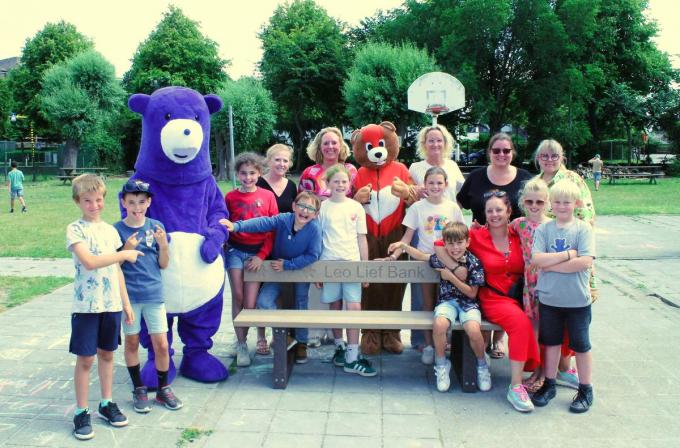 Bij ONS basisschool Groenestraat werd het schooljaar vrijdag feestelijk afgesloten met een bezoekje van Warme William en Leo Lief. Die laatste bracht zelfs een heuse ‘Leo Lief-bank’ mee voor op de speelplaats.
