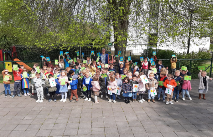 Alle kleuters van Vrije Basisschool Kantelberg knutselden de voorbije weken een prachtige bloemenkaart voor de bewoners van RVT Herdershove. Met deze kaart willen de kinderen hun groot hart tonen voor de mensen van het rust- en verzorgingstehuis. De school heeft al een tijdje een fijne samenwerking met Herdershove. Enkele jaren geleden werden enkele bewoners uitgenodigd om een kleuteroptreden bij te wonen. Toen brak de coronapandemie uit en besloten de kleuterjuffen om elke lente iets te knutselen voor deze mensen. Vorig jaar werden lentebloemen geknutseld, terwijl dit jaar geopteerd werd voor een lentekaart met een lieve groet. Vrijwilliger Dirk De Smit (opa van Seppe uit het 3de kleuterklas) kwam op 27 april de kaart ophalen. (PDC/gf)