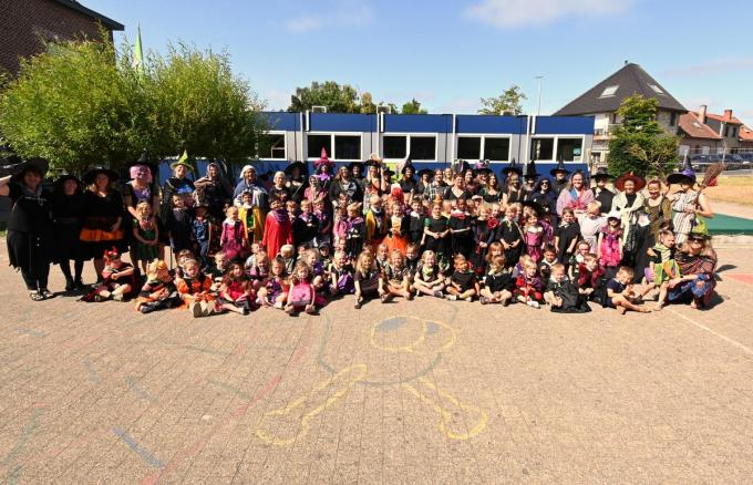 De kinderen trokken verkleed als heksen door het dorp. Samen met een dertigtal ouders en begeleiders gingen ze richting de kruidentuin en de heksenkring om de grote heksenkoppen te bewonderen. Na terugkomst volgde op de speelplaats van de school nog een fotomoment met alle verklede kinderen en hun ouders die de tocht hadden volbracht.