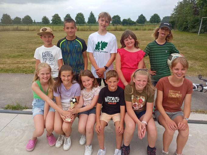 Op het voetbalterrein van ’t Pleintje werd alvast duchtig gescoord met niet minder dan 14 doelpunten. De jongeren hebben zich uitermate geamuseerd tijdens twee helften van telkens 25 minuten. De gewonnen trofee zal nu in de school geplaatst worden, terwijl de trofee van vorig jaar verloot werd onder de deelnemers. Lieze Liebert was de gelukkige die de trofee 2022 mee naar huis mocht nemen. (PC)