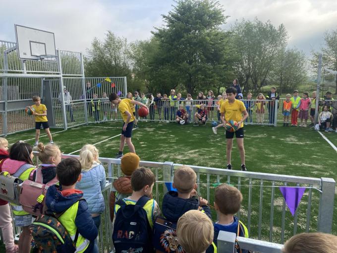 De omnisportkooi, die tijdens de paasvakantie werd geïnstalleerd, is een omheind multifunctioneel sportveld van 23 meter bij 9 meter, waar de leerlingen kunnen voetballen, basketten, volleyballen… Wij geloven dat een optimale sportieve invulling van de vrije momenten het leren enkel kan bevorderen”, gaat Bruno Lecluyse verder. “Bewegen doet beter leren, daarvan zijn we overtuigd. We willen de infrastructuur maximaal benutten tijdens de turnlessen en vrije momenten. Er wordt een beurtsysteem uitgewerkt zodat alle klassen aan bod komen.”