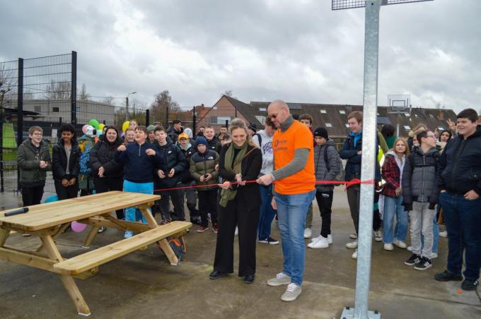 De ouderraad van school De Lage Kouter in Kortrijk opende afgelopen maandag officieel een vernieuwde speelplaats. De 350 leerlingen kunnen nu gebruikmaken van twee basketbalringen, twee voetbaldoelen en zeven nieuwe picknicktafels. Om dat te financieren, verzamelde de ouderraad de afgelopen jaren 8.000 euro met hun traditiegetrouwe spaghettifestijn.
