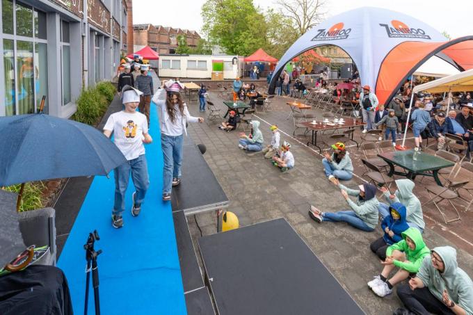 Zaterdag was er feest met een spaghettimiddag en dessertbuffet en een heus Hoedenparade op de catwalk: de dresscode was namelijk een hoed dragen. De klassen en leefgroepen traden aan met eigengemaakte hoofddeksels zoals ruimtehelmen, zonnehoedjes en gekke hoedjes begeleid met pancartes en geschilderde tekeningen. Je zag overal blijde gezichtjes.