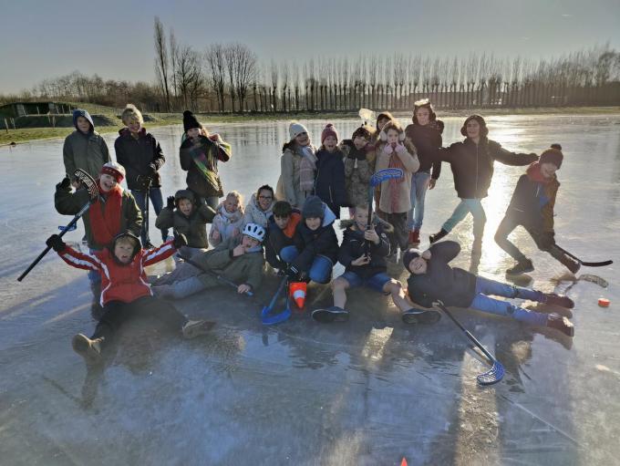Ze konden naast veel ijspret, schaatsen en glijden ook kennismaken met ijshockey. “We konden samen met onze leerlingen deze namiddag niet aan de verleiding weerstaan om te gaan genieten van het ijs op de weide. Het was wellicht ook de laatste dag ijspret. Dus voor één keer moesten de gewone lessen wijken om buiten te gaan genieten, want dit hebben we de laatste jaren nog nooit meegemaakt: een mooie, veilige ijsvlakte op de Baliebrugge”, lachte juf Karine Standaert.