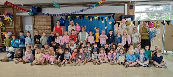 Tijdens een sfeervol afscheidsmoment op de speelplaats, omringd door alle kleuters, kreeg juf Caroline het eerbetoon dat ze dubbel en dik verdiende. Op de groepsfoto straalt ze in het midden, letterlijk omringd door haar grootste passie: de kinderen. Het schoolteam en alle ouders wensen haar een welverdiend en zorgeloos pensioen toe. “We zullen haar missen, maar ze blijft voor altijd deel van onze schoolfamilie”, besluit Bieke De Wulf. (PG)