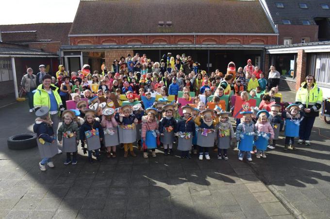Op de foto zien we alle leerlingen en aanwezige leerkrachten vlak voor de optocht.