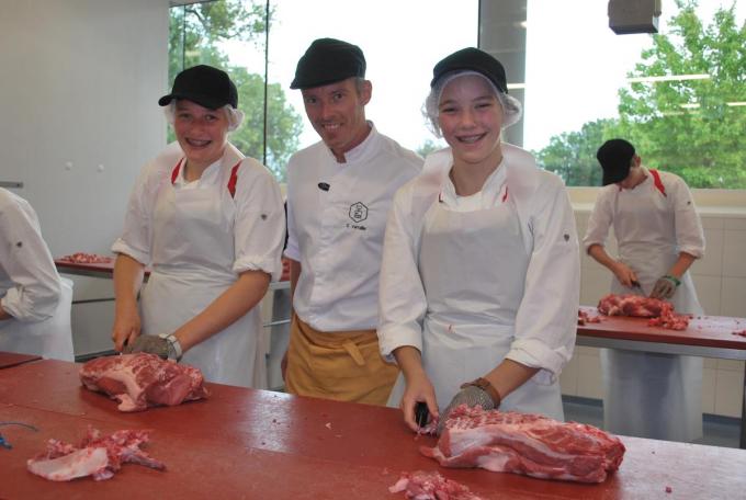Eigenlijk is het al het derde schooljaar dat Stijn Verfaillie lesgeeft in Ter Groene Poorte. “Twee jaar heb ik deeltijds lesgegeven, een lerarenopleiding gevolgd in Vives Kortrijk en mijn zaak gerund. Dat was een heel zware periode. Het eerste jaar gaf ik enkel praktijkles, maar gaandeweg sta ik ook meer en meer als theorieleraar voor de klas. Ik heb ondertussen helemaal mijn draai gevonden in het onderwijs. Ik besef ondertussen maar al te goed dat het beroep van leraar meer inhoudt dan enkel lesgeven en kennis doorgeven. Ik voel me verantwoordelijk voor de gasten die ik begeleid. Ik wil dat het goede slagers worden. Ik wil mijn twintig jaar ervaring als zelfstandige met plezier aan hen doorgeven.”