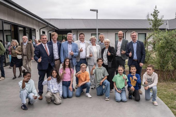Feest langs de Brugsesteenweg waar de vernieuwde stedelijke basisschool vrijdagavond feestelijk werd geopend.