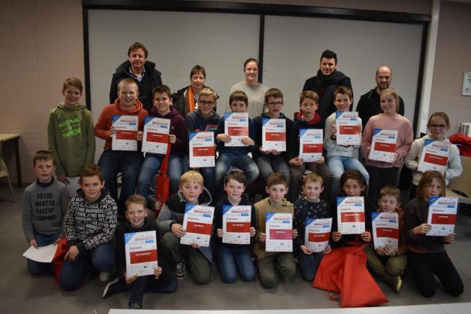 Twintig kinderen uit het vijfde en zesde leerjaar volgden acht weken lang de Tiener Techniekacademie, een vaste waarde in de activiteiten van Team Ontspannen. Onlangs mochten ze hun diploma in ontvangst nemen. We zien vooraan v.l.n.r. Brent Vandamme, Kobe Crombez, Arthur Quaeghebeur, Jens Mahieu, Vik Tommeleyn, Wolf Soenen, Lukas Deschepper, Marcel Vanderhaeghe, Otto-Jan Igodt en Sef Derdaele. In het midden v.l.n.r. Leon Gheeraert, Raf Parmentier, Lucas Vervisch, Mathis Pellethier, Tiebe Depuydt, Mauro Pattyn, Tibo Dardenne, Remi Allewaert, Lise Vanhuyse en Dieuwke Vantomme. Achteraan zien we schepenen Peter Vantomme en Heidi Coppenolle, mentor Frieke Latré, Simon Bruynsteen van Team Ontspannen en mentor Jens Boey. (foto TOGH)