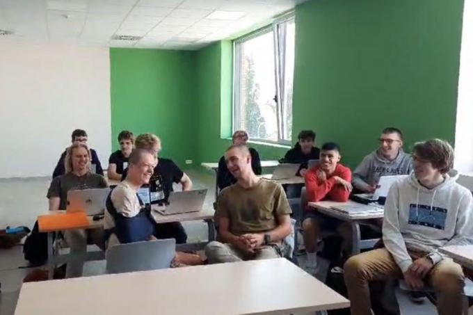 Floris en Quinten komen er al snel bij zitten. Ze missen daardoor een stukje van de les Frans, maar dat blijken ze niet zo erg te vinden. “Het is niet ons favoriete vak, neen”, lachen ze. “Hoeveel we daarvoor scoren? Ergens in de 70% ongeveer…” “Het zijn absoluut geen nerds voor wie enkel schoolwerk telt”, zegt wiskundeleerkracht Jos Duchi die er samen met aardrijkskundeleerkracht Hans Blanchaert bij is komen zitten. “Het zijn echt heel sociale kerels die goed in de groep liggen, en die naast schoolwerk ook nog een heleboel andere bezigheden hebben.”