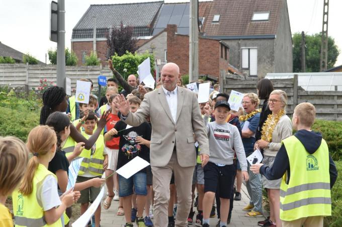 Nadat hij al op donderdag door de kleuters uitgebreid werd verwend, kreeg hij op vrijdagmorgen bezoek van enkele vrienden en kennissen, waaronder zijn moeder, voor een verrassingsontbijt. Daarna ging het naar de school waar hij langs een erehaag van leerlingen en leerkrachten tot op de speelplaats werd geleid. Daar werd hij met nog veel meer bekende gezichten geconfronteerd en namen de kinderen afscheid met enkele liedjes en dankwoorden. De man was zichtbaar aangedaan en kon voor een keer moeilijk uit zijn woorden. Hij zal de 25 jaar als directeur blijven koesteren.