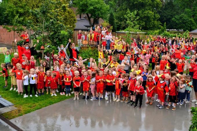 Het werd een opening in rood, geel en zwart want op school was er ook een EK gekte. zelfs directrice Nadine kwam in tricolore outfit naar school. (Jan Maeseele)