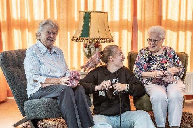 Dinsdagavond speelde Leni al kort een gezelschapsspel met bewoner Alberic Declercq. “Die jongeren zorgen hier voor leven in de brouwerij. Het is leuk om ze in huis te hebben”, aldus de bewoner. Ook Laura Vande Kerckhove nam al enkele weken voor de start van het academiejaar haar intrek in haar nieuwe kot. “Het is fantastisch hier. Inmiddels heb ik al samen met de bewoners gebreid. Je merkt gewoon dat er wederzijds enthousiasme is.” Dat beaamt ook Simonne Deceuninck (95). De nog steeds kranige bewoonster was het gezicht van de campagne om kotstudenten naar Sint-Henricus te lokken. “Ik denk dit goed gaat lopen. Er zijn hier zeven jonge mensen. Ik heb zelf geen kleinkinderen, maar ik zal een goede oma zijn. Ik ga me niet bemoeien, maar ga ze wel vragen om proper te zijn. Ik hoop dat wanneer er iets zal te doen zijn in hun gezamenlijke ruimte, ik ook eens uitgenodigd ben. En is er een feestje, dan dans ik graag mee. Als zij manieren hebben, ga ik dat ook hebben.”