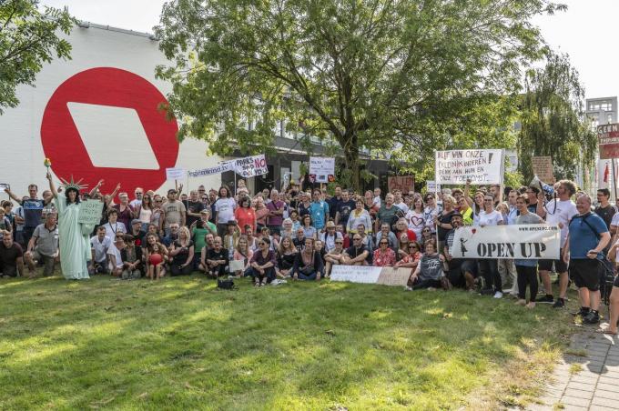 “We zijn hier om de verslaggeving van de coronacrisis aan te klagen”, klinkt het bij Jan Vermeersch van Open Up, de grootst vertegenwoordigde beweging. “Wij vinden dat er al te vaak een eenzijdig geluid wordt gehoord. Er zijn hier mensen aanwezig met verschillende visies, maar er zijn veel raakvlakken.” Het ging om een actie die zijn oorsprong vindt bij de organisatie WWD of World Wide Demonstration.