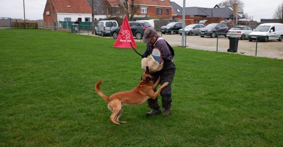 Toen de inbrekers Elien Decouttere uit Wevelgem begin janauari te lijf gingen, kwam de heldhaftige Aika tussen en beet ze, letterlijk, van zich af. Elien en haar man Nicolas Vallaey waren terecht trots op hun trouwe viervoeter. Aika genoot eerder een IPO-opleiding in de Heulse Kynosklub. Een cursus om je hond te leren bijten, zeg je? Onze man trok zijn stoute schoenen aan en nam deel aan zo’n beruchte training.