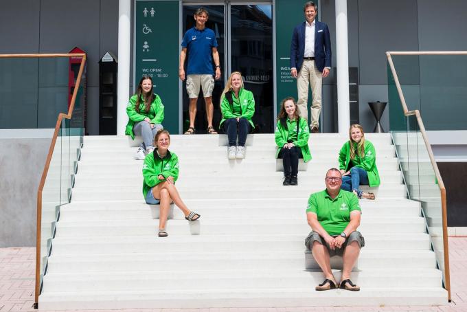 De comfortabele polo’s en softshells dragen de nodige logo’s en emblemen zodat de eerstehulpverleners deze zomer op de dijk en het strand heel herkenbaar zijn bij het uitvoeren van hun taken. De nieuwe opvallende outfits werden voorgesteld op de trappen van het toerismekantoor.