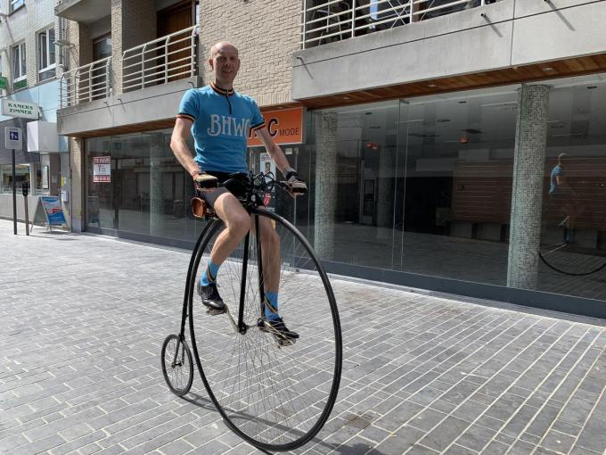 De ‘hoge bi’ is een fiets met een groot voorwiel en een klein achterwiel en werd vooral bereden tussen de jaren 1870 en 1890. Rik rijdt er ondertussen al dertig jaar mee rond en neemt zelfs deel aan Belgische Kampioenschappen. Enkele jaren geleden was hij nog in Eastbourne voor het Brits Kampioenschap en het Wereldkampioenschap Hillclimb. Op die laatste haalde hij een podiumplaats.