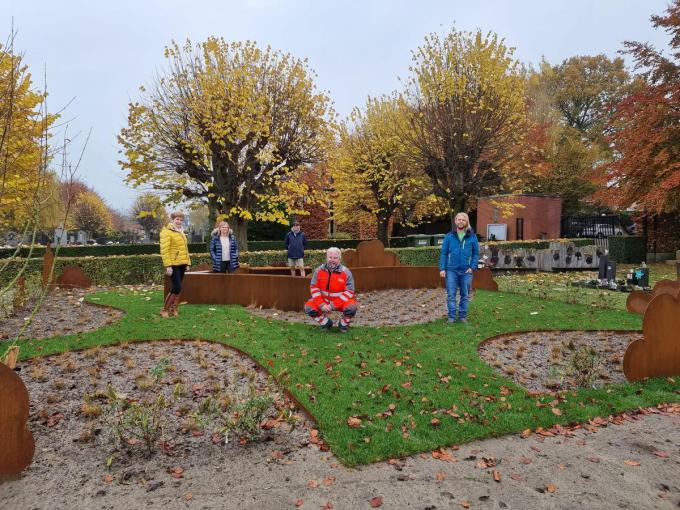 Naast de elementen in cortenstaal is er ook ruim aandacht voor aanplanting. Op de plaats waar de sterretjes komen, is ook siergras aangeplant. “Want dat straalt rust uit en wiegt mee in de wind”, duidt Bovijn-Tack. “Tussen de wolkjes werden dan weer vlinderstruiken aangeplant. Die bloeien uitbundig in de zomer en trekken veel kleurrijke vlinders aan. Als teken van hoop werden ook narcissen voorzien. We zijn alvast erg tevreden met het resultaat”, besluit de schepen. (TM)