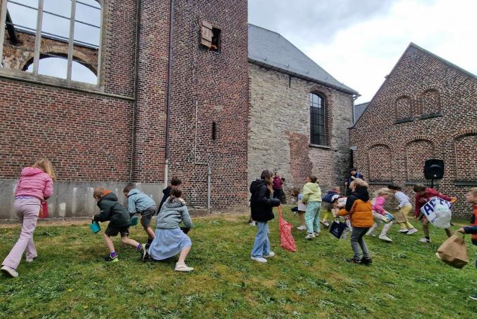 Toen het de beurt was aan het eerste en tweede leerjaar om eieren te rapen, kreeg Alex een paaseitje recht in het oog. De gulle paashaas zorgde dan ook voor een ware eierregen op het gras.