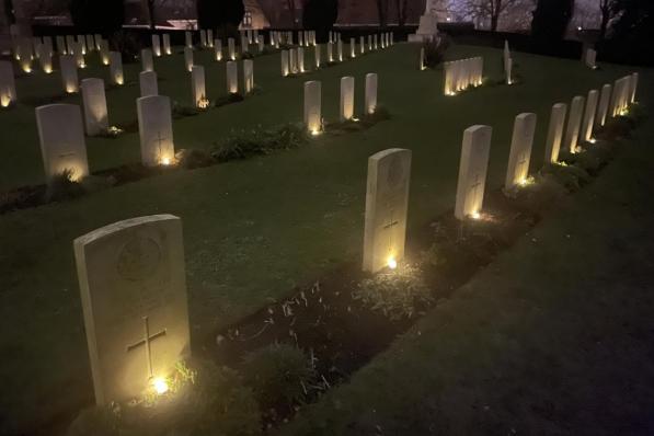 Ieper / Samenleving Ieper / Samenleving “Kippenvel”: motorclub verlicht oorlogsbegraafplaatsen met recordaantal kerstlichtjes 25 december 2023