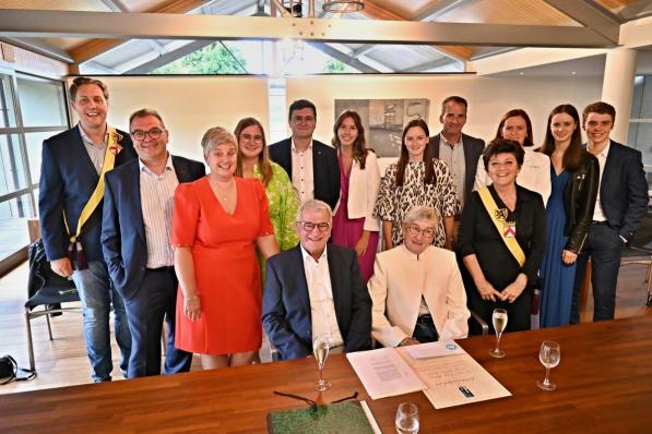 Brugge / Huwelijk Brugge / Huwelijk Charles en Anny heffen met hun familieleden het glas op hun diamanten jubileum 6 augustus 2023
