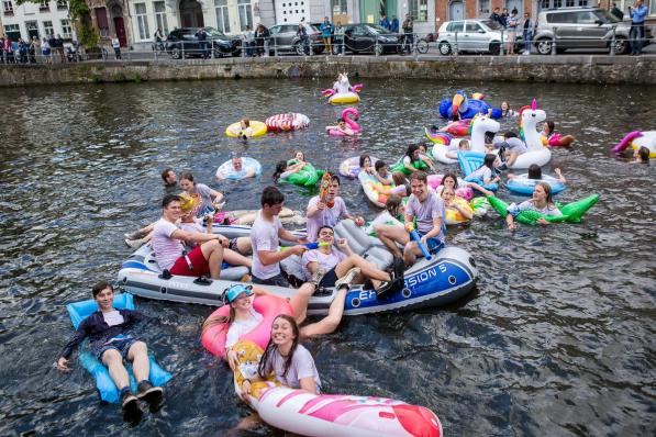 Brugge / Schoolactiviteiten Brugge / Schoolactiviteiten Duiken in de Brugse reien mag niet en dus houden 44 laatstejaars sponsengevecht 13 juni 2023