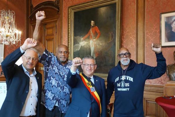 Update Brugge / Samenleving Update Brugge / Samenleving Iconisch gebaar van de Black Power-atleten in Brugs stadhuis herhaald 5 juli 2022
