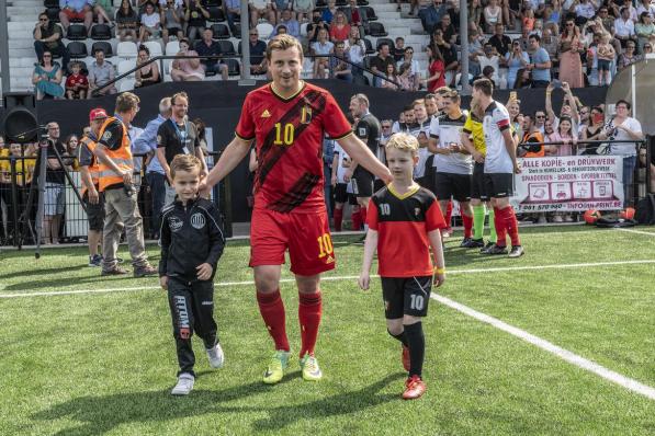 Roeselare / Samenleving Roeselare / Samenleving ‘Ronaldinho’ Niels Destadsbader grote ster tijdens benefietwedstrijd van Club Roeselare tegen selectie voormalige Rode Duivels 16 mei 2022