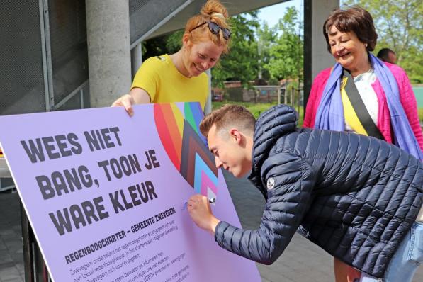 Brugge / Samenleving Brugge / Samenleving Regenboogvlaggen op heel wat plaatsen in West-Vlaanderen voor Dag Tegen Holebifobie 5 juli 2022