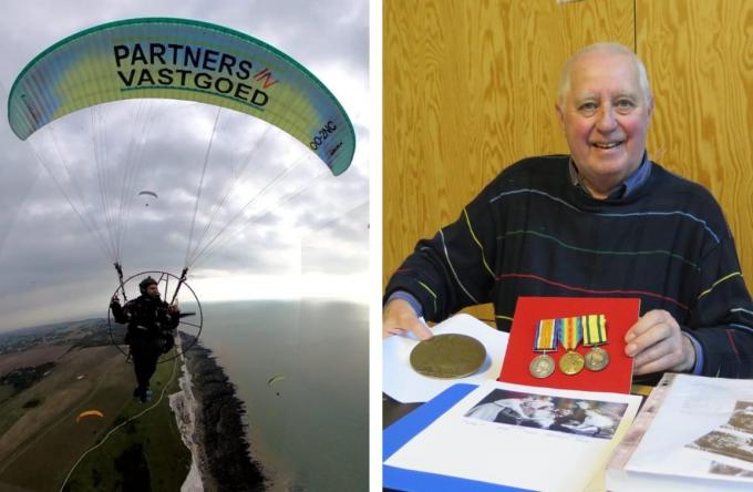 Een historisch misverstand na de Eerste Wereldoorlog leidt nu tot een wereldrecord van Belgische en Britse paramotorpiloten boven het Kanaal. Met dank aan de Brit Dell (84), z’n Uncle Joe en de schoonvader van piloot Frederik Vandamme uit Ieper.
