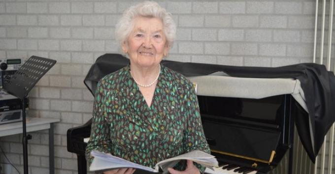 96 jaar is Paula Vansteelant en elke dinsdagmorgen staat ze paraat in dienstencentrum Vijverhof in Tielt voor de repetitie van het koor De Notenkrakers. “Veel doen houdt me jong”, zegt ze enthousiast.