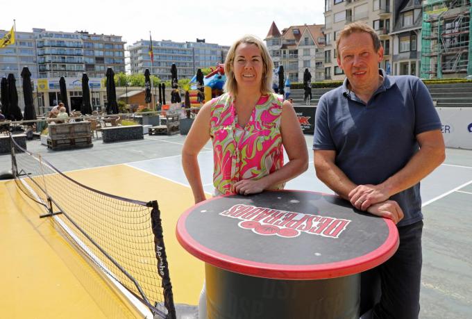 Het ondernemende koppel Wim Heggerick (50) en Noëlla Vercauteren (44) is tijdens de paasvakantie aan hun derde seizoen met de Picklebar op het Rauschenbergplein begonnen. “De oude tennisclub van Westende-bad, zowel het terrein als de bar, stond al jaren leeg. We gingen bij de gemeente polsen om er een concessie van te maken, zodat we er met pickleball nieuw leven in konden blazen. Het eerste jaar was meteen een succes. Er is altijd zon op het terrein, wat zorgt voor een aangename setting om te zitten. Vorig jaar hebben we het terras, in de volksmond de legendarische put, naar 225 plaatsen uitgebreid. Met twee springkastelen was dit een must”, vertelt Wim.
