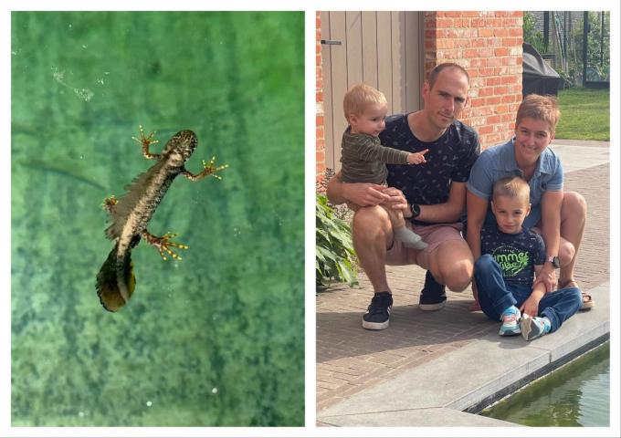 “Een gekko!” De éénjarige Cériel spot een badend beestje in de zwemvijver in de achtertuin. Aanvankelijk kenden ook z’n ouders Daphné Petit (34) en Thomas Wyffels (35) het diertje niet dat er een maand geleden opdook. Hun verrassing was groot toen ze lazen over de kamsalamander, de grootste inheemse watersalamander van het land die Europees beschermd wordt.