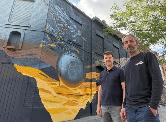 “Of het dorpsgezicht sterk zal veranderen? Ja en neen. Er komt een stuk nieuwbouw, maar de bestaande gevels van het oud gemeentehuis en pastorie blijven behouden omwille van het erfgoed. Zo blijft de eigenheid van het dorp en marktplein behouden. We wilden ons project en de aankomende stoet in de kijker stellen. Wat konden we beter doen dat een graffitikunstenaar te laten werken aan de gevels die wel afgebroken worden. Gelukkig hebben we in Beselare een top graffitikunstenaar met Simon Delahaye. Het is een mooi tafereel geworden.”