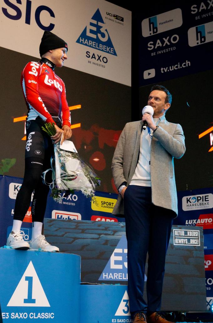Michaël Vannieuwenhuyze (Team Harelbeke), de burgemeester van Harelbeke, krijgt na zijn uitdaging aan de Harelbeekse renners die de E3 Saxo Classic reden de rekening gepresenteerd. Arjen Livyns was de eerste Harelbeekse renner aan de meet en heeft een sportieve uitdaging klaar voor de burgemeester: “Loop de gemeentegrenzen van Harelbeke af.” De burgemeester neemt sportief de handdoek op. “Het wordt pittig, maar ik begin alvast weer meer te trainen”, lacht hij.