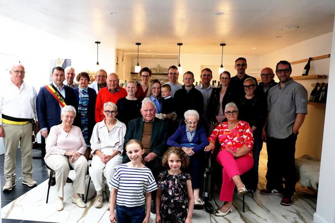 Raphaël Castelein (90) en Simonne Callewaert (94) hebben in Monsieur Beurre in Merkem, het restaurant van hun kleinzoon, hun platina bruiloft gevierd.