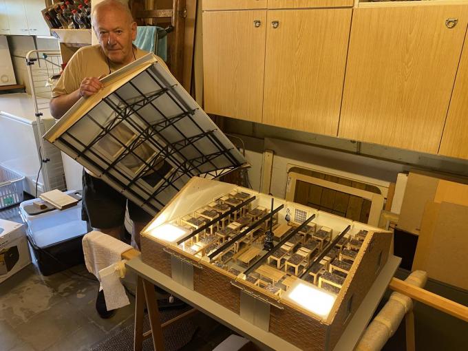 Liefst twee jaar lang werkte Raymond Bailleul aan een maquette van een barak die in het voormalige krijgsgevangenenkamp in het Vloethemveld staat. “Liefst 3.000 steentjes zitten er in de muren. Steen voor steen heb ik die opgebouwd.”