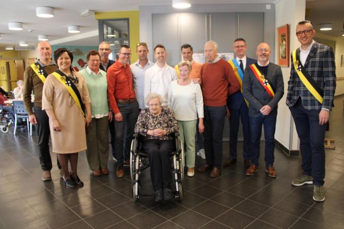 Burgemeester Kurt Grymonprez en schepenen Nadia Staes, Jan Dierickx-Visschers, Bruno Lambert en Sam Weyts kwamen, net als provincieraadslid Kurt Himpe, langs om de eeuwelinge proficiat te wensen.