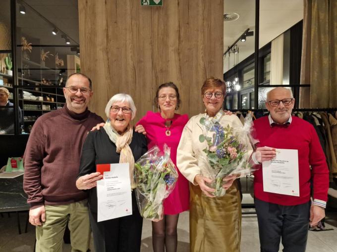 Daarnaast werden enkele vrijwilligers gedecoreerd voor hun jarenlange vrijwillige inzet: Ivan Vermeersch (45 jaar dienst, onder meer als afdelingsondervoorzitter en afdelingsverantwoordelijke Internationale Samenwerking), Hilde Casert (35 jaar dienst als vrijwilliger bij de bloedinzameling), dr. Linda Sabbe (25 jaar als afdelingshoofdarts en afdelingsvoorzitter) en Joyce Sys (tien jaar dienst als hulpverlener afdelingshulpdienst en vrijwilliger bij de bloedinzamelingen).