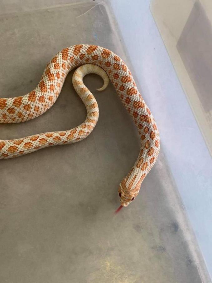 Het reptiel is ongeveer veertig centimeter groot en heeft een gele kleur. “De politie zei tegen mij dat ze een gouden slang hadden gevonden, maar eigenlijk gaat het om een albino’, zegt Mario. “Maandag komt een dierenarts kijken of alles in orde is met het dier, maar het moet sowieso nog enkele weken in quarantaine blijven. Als de eigenaar niet opdaagt, dan zal ze op termijn ter adoptie gesteld worden.”