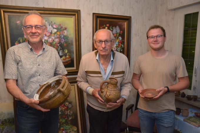 “Tussen al de vondsten van Roger zijn er twee Romeinse stukken gemaakt uit Terra Sigillata, het Romeins luxeaardewerk”, pikt Lennert Lapeere in. “Het kleinste stuk is een drinkbekertje uit de tweede eeuw na Christus, het tweede stuk is een schaal uit de tweede helft van de eerste eeuw na Christus, geproduceerd in Zuid-Gallië. Het overige aardewerk is voornamelijk lokaal geproduceerd grijs en rood aardewerk uit de 13de en de 16de eeuw. Het grootste stuk uit de collectie is een grote kookpot uit de 17de of 18de eeuw.”