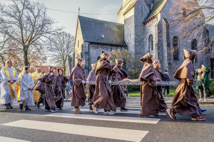 Sint-Antonius Abt wordt aanzien als de beschermer van landbouwers en vee en behoeder van besmettelijke ziektes bij mens en dier. Onder begeleiding van de muzikanten van de Rollegemse harmonie en drumband liepen de Rollegemse vormelingen in pij rond de kerk en droegen een geslacht varken in de kerk. Na de eucharistieviering volgde nog de tractorwijding.