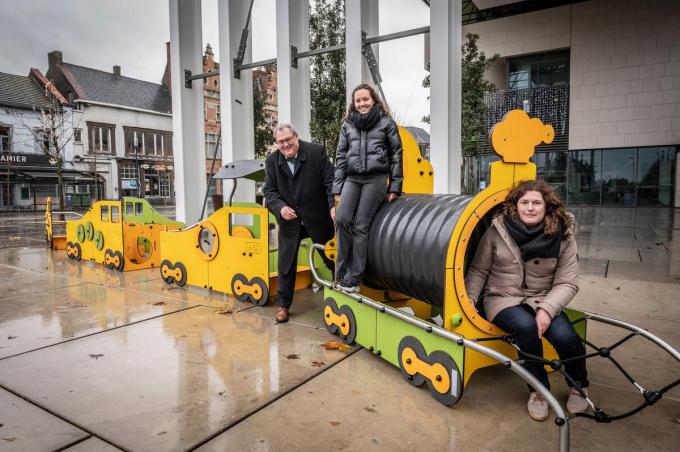 Eén van de bijhorende acties is de opvallende speeltrein die onlangs geplaatst werd op het Stationsplein. De speeltrein is geschikt voor de kleinsten vanaf 2 jaar. Een kleine trein vlakbij zijn grote broer in de buurt. Een voorbeeld van een speelplek in de openbare ruimte die verbinding maakt. Het spelende kind maakt er onmiddellijk een speelplek van.
