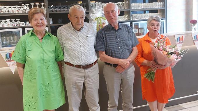 Eén van de populaire activiteiten van Neos Pittem-Egem is de kaartcompetitie, waarvoor tweemaal per maand samengekomen wordt. 32 leden worden dan willekeurig verdeeld over acht tafels, waarna er naar hartenlust kan gekaart worden. Iedereen krijgt punten, die het hele jaar opgeteld worden, zodat op het einde van het seizoen kan gekeken worden wie de hoogste score heeft en kampioen wordt. Dit jaar deelden Rosa Valcke en André De Witte de eerste plaats en vervolledigde Georges Demeulemeester (niet op de foto) het podium. Op woensdag 18 juni werden de winnaars gehuldigd in CC Het Buurthuis tijdens het kampioensfeest. We zien op de foto v.l.n.r.: Rosa, André, speltechnisch begeleider André Spillebeen en organisatorisch begeleider Maria Vanoverschelde. (JG/foto Jan)
