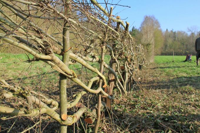“In het begin had ik het er erg lastig mee, stammetjes bijna helemaal doorhakken”, vertelt Luc. “‘Dit kan toch niet opnieuw tot leven komen!’ Maar toch… Vol veerkracht werden in het voorjaar terug scheuten gevormd aan de meidoornen. Een ondoordringbaar raster van takken vol leven was het resultaat. De oude techniek heeft een positieve impact op veel aspecten zoals biodiversiteit, bodemerosie, schuilplaatsen voor dieren en ook het verjongen van de haag zelf.’